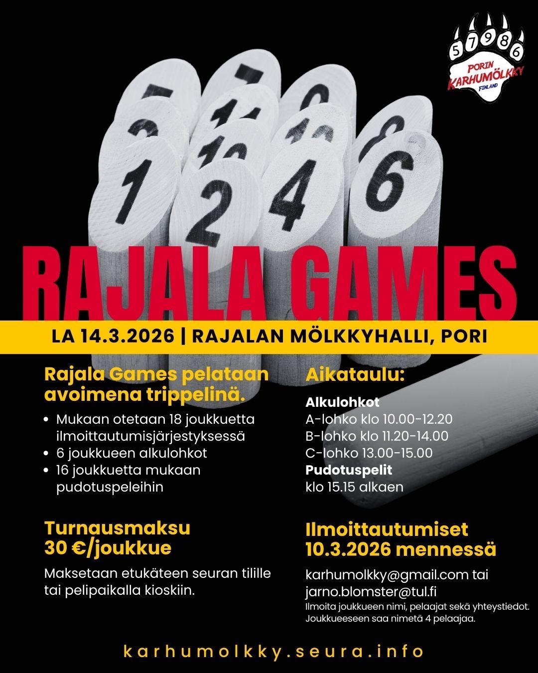 Mölkyn Rajala Games pelataan vuonna 2026 avoimena trippelinä la 17.3. Mukaan otetaan 18 joukkuetta ilmoittautumisjärjestyksessä ja kilpailu on nyt täynnä. 6 joukkueen alkulohkot ja 16 joukkuetta…